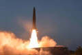 A photo released by KCNA showed thousands of people holding placards to form a giant picture of Xi’s face and the Chinese flag at the mass gymnastics and arts performance.