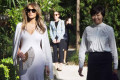The president and emperor and their wives returned outside to walk a red carpet and stand under a hot sun while a military band played the national anthems of both countries.